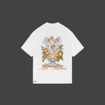 White  T-shirt with screen print on the front in a medium weight cotton with an oversized fit.